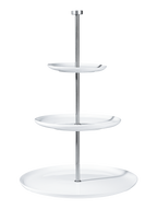 Stilvolle, große, dreistufige Etagere der beliebten à table Serie. Die drei Teller haben einen Durchmesser von 21 cm, 26,5 cm und 30 cm, die Etagere hat eine Höhe von 49 cm und sind damit auch für größere Häppchen, Törtchen, Gebäck & Co. geeignet. Die Etage kann problemlos auseinandergeschraubt und so platzsparend verstaut werden.
