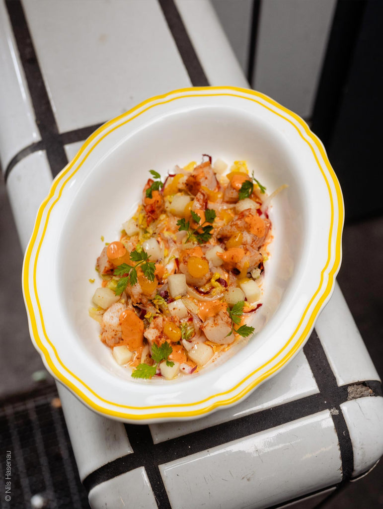 In Zusammenarbeit mit Sternekoch Tim Raue entstand unsere exklusive Fine Bone China Serie „sphere“– ein liebevoller Brückenschlag zwischen Nostalgie und Moderne. Inspiriert vom typischen „old-school“ Design aus Berliner Vorstadtwohnungen, kombiniert sphere vertraute Formen mit einem kraftvollen, modernen Twist: einer handgemalten, knallgelben Randlinie, die jedem Stück Persönlichkeit und Energie verleiht.