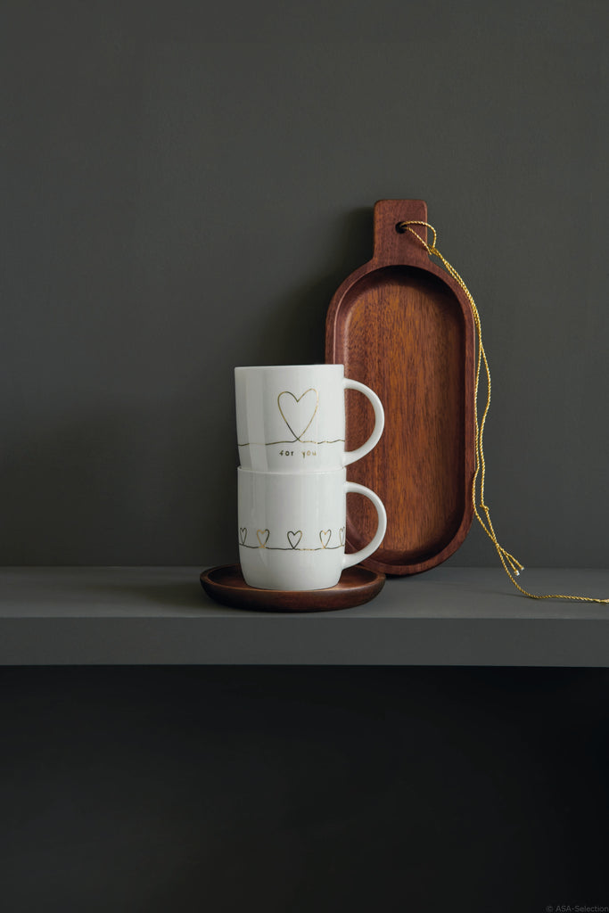 Hochwertiges Fine Bone China mit Echtgolddekor macht die Ausführungen von „Linia“ zu Schmuckstücken auf dem gedeckten Tisch. Zarte goldene Linien stellen winterliche Motive wie Santa Claus oder einen Tannenbaum dar oder vermitteln liebe Botschaften. Eine goldene Linie, die sich um den gesamten Becher zieht, akzentuiert das gefühlvolle Design.