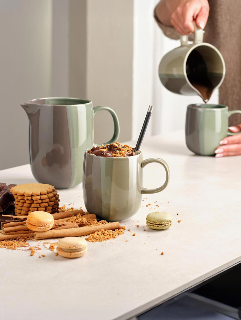 Wärme zum Anfassen – joy cocoa ist gemacht für die kleinen Auszeiten voller Wärme, Genuss und Geborgenheit. Die organisch geformten Becher und Tassen schmiegen sich angenehm in die Hand und bringen stilvolle Ruhe in den Alltag. Ob heiße Schokolade, Espresso oder Milch mit Zimt – Joy Cocoa macht den Moment besonders. Mit zwei Bechergrößen, einem Krug und einer Espressotasse ist alles da für echte Wohlfühlrituale.