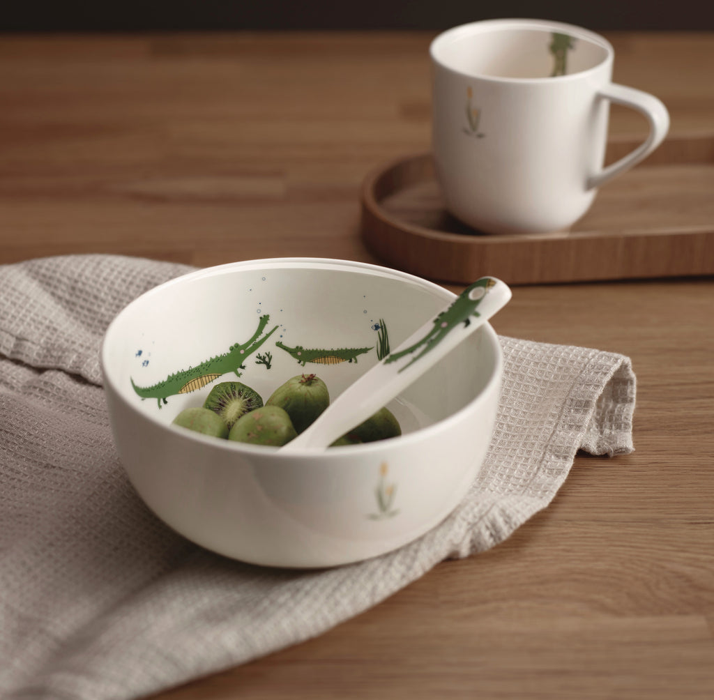 Ein mitgeliefertes Kinderbuch berichtet über das Leben der tierischen Darsteller Emma Elefant, Croco Krokodil, Leo Löwe und Fiona Flamingo. Jedes Geschirrset wird gemeinsam mit dem Buch in einem attraktiven Geschenkkarton angeboten.