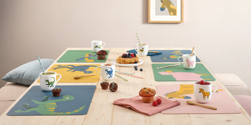 Kinderen houden van verhalen en ASA Selection houdt van kinderen. Daarom vertelt het eerste Fine Bone China kinderservies met minimalistisch en tegelijkertijd liefdevol versierde borden, kommen, mokken en lepels de verhalen van Emma Olifant & Co. Zo leren kinderen op jonge leeftijd tafelnormen en het zorgvuldige omgaan met breekbare voorwerpen. In tegenstelling tot veel bamboeserviezen, die vaak melamine bevatten, is porseleinen servies vrij van schadelijke stoffen. Voor een compleet kindvriendelijk gedekte tafel zijn er bijpassende, afwasbare placemats met lederen look verkrijgbaar.