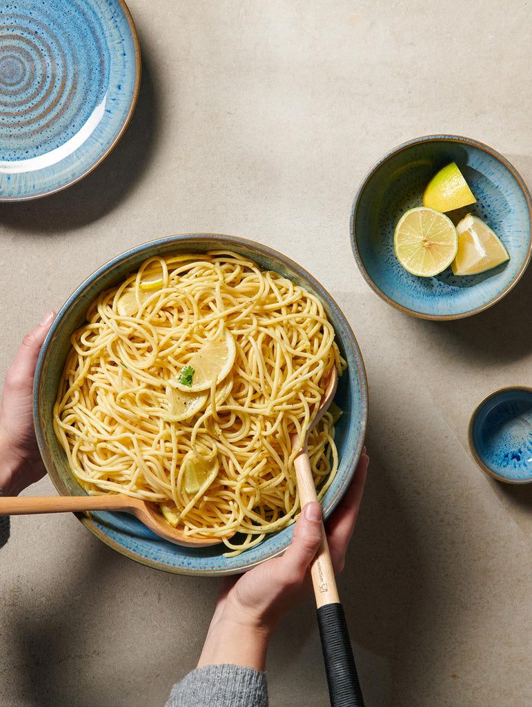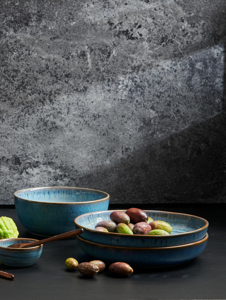 Ergänzend zu den klassischen Poké Bowls haben wir die Kollektion um drei weitere Produkte erweitert: Ein Teller sowie zwei neuen Bowl-Größen lassen sich in den Dekorfarben Tamari, Mangosteen, Cauliflower und Ocean zu den Poké Bowls und Mini Poké Bowls kombinieren. Die Serie überzeugt mit ihrer Einzigartigkeit und Authentizität, denn alle Teile werden in Handarbeit mit Leidenschaft von Könnern in Portugal gefertigt. Eine Effektglasur, die bei jedem Brand anders reagiert, fühlbare Drehrillen sowie die nicht ganz perfekten Rundungen sorgen für ein ausgeprägt handwerkliches Erscheinungsbild.