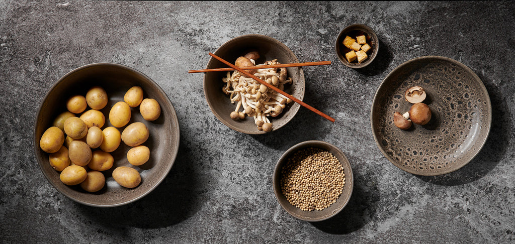 Ergänzend zu den klassischen Poké Bowls haben wir die Kollektion um drei weitere Produkte erweitert: Ein Teller sowie zwei neuen Bowl-Größen lassen sich in den Dekorfarben Tamari, Mangosteen, Cauliflower und Ocean zu den Poké Bowls und Mini Poké Bowls kombinieren. Die Serie überzeugt mit ihrer Einzigartigkeit und Authentizität, denn alle Teile werden in Handarbeit mit Leidenschaft von Könnern in Portugal gefertigt. Eine Effektglasur, die bei jedem Brand anders reagiert, fühlbare Drehrillen sowie die nicht ganz perfekten Rundungen sorgen für ein ausgeprägt handwerkliches Erscheinungsbild.