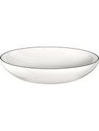 Hochwertiger Pasta- und Suppenteller aus der Serie à table ligne noire (22 cm x 4,5 cm). Diese Serie ist eine Ergänzung der klassischen à table Serie. Die beiden Serien sind untereinander perfekt kombinierbar. Der edle, schwarze Rand auf diesem Pastateller wird in Handarbeit auf jeden Teller aufgetragen und übt sich in vornehmer Zurückhaltung, damit Ihre Speisen perfekt zur Geltung kommen. Alle Teller der Geschirrserie sind aus edlem Fine Bone Porzellan und weisen eine extreme Härte auf, sind dabei jedoch vergleichsweise leicht.