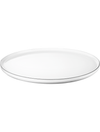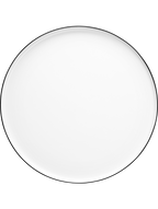 Hochwertiger großer Teller der Serie oco ligne noire. Dieser Teller aus weißem Porzellan ist ein echter Alleskönner. Mit einem Durchmesser von 32 cm ist er als Platzteller groß genug, um allen Esstellern der oco Serie als Unterteller zu dienen und sorgt für festliche Stimmung an der gedeckten Tafel. Aber auch als Pizzateller oder Servierplatte kann er zum Einsatz kommen. Der Teller ist mit einem schwarzen Rand verziert edel und unaufdringlich zugleich. Er ist perfekt kombinierbar zu allen anderen Artikeln der oco Serie.