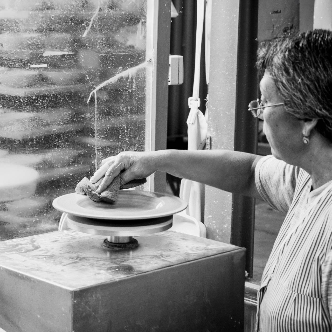 Manuale lebt von geschmeidiger Unvollkommenheit. Alle Geschirrteile werden von Hand geformt, Schnaupen im noch feuchten Zustand manuell modelliert.