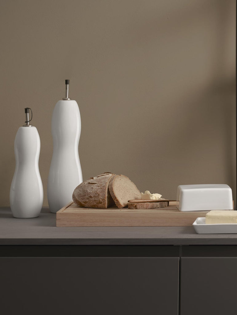 Geschwungene Essig-/Ölflasche aus der ASA Selection grande. Die Flaschen sind aus hochwertigem Porzellan und mit einem Stopfen verschlossen. Mit einer Höhe von 24,5 cm haben Sie ein Fassungsvermögen von 0,75 l. Genug Platz für schmackhaftes Öl und aromatischen Essig. Kombinieren Sie diese Flasche direkt mit einer weiteren, so dass sich Öl und Essig auf Ihrem Tisch direkt die Hand reichen können! Geschirr der Kollektion ASA grande ist schlicht und elegant designed. Die zurückhaltende Optik sorgt dafür, dass das Essen im Vordergrund steht, und nicht der gedeckte Tisch.