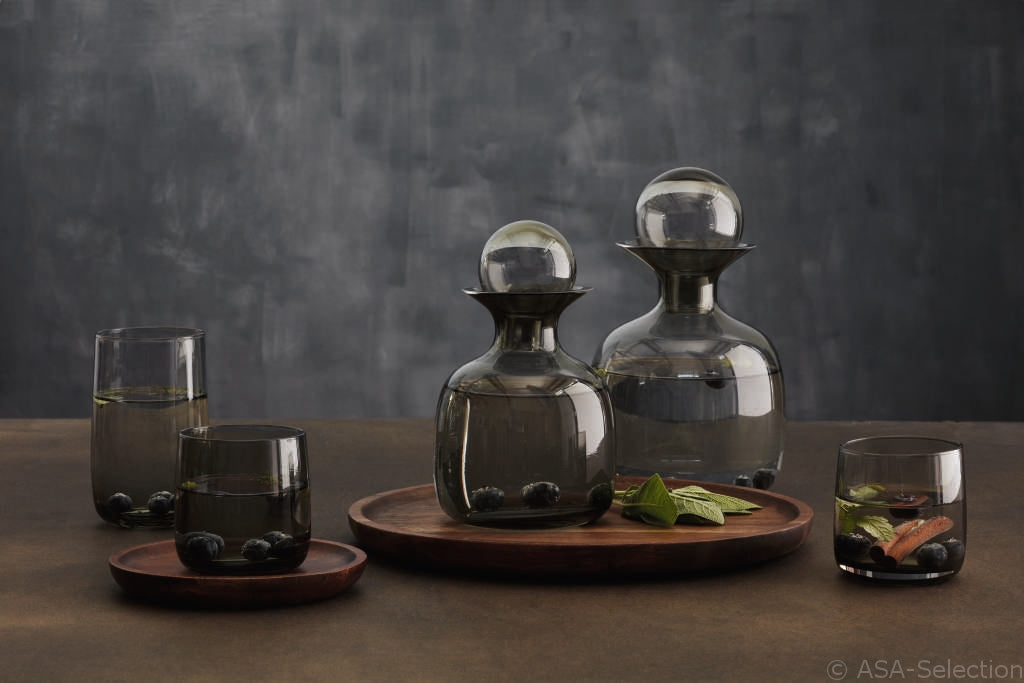 Die mundgeblasene Glas-Kollektion Sarabi verbindet Design, Genuss und Funktion. Wie die Gläser ist auch die Karaffe, die es in zwei genussgerechten Größen gibt, ein sensorisches und gestalterisches Highlight in der Hausbar. Mit nur einem Hauch von Farbe strahlen die Karaffen im Dekor "grey" kühle Eleganz aus. Die Karaffen werden im Geschenkkarton angeboten.